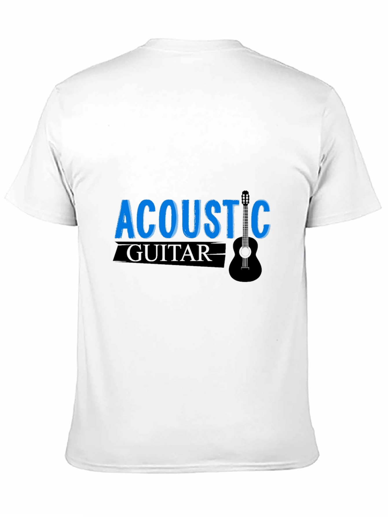 Showcase your love for music with this stylish black graphic t-shirt. Featuring the words 'Acoustic Guitar' in a bold, blue font, complete with a sleek guitar silhouette. Perfect for musicians, music lovers, or anyone who appreciates a unique and eye-catching design. Made from comfortable, breathable fabric, this tee is ideal for casual wear, concerts, band practice, or just lounging around. Grab yours today and let your passion for music shine!