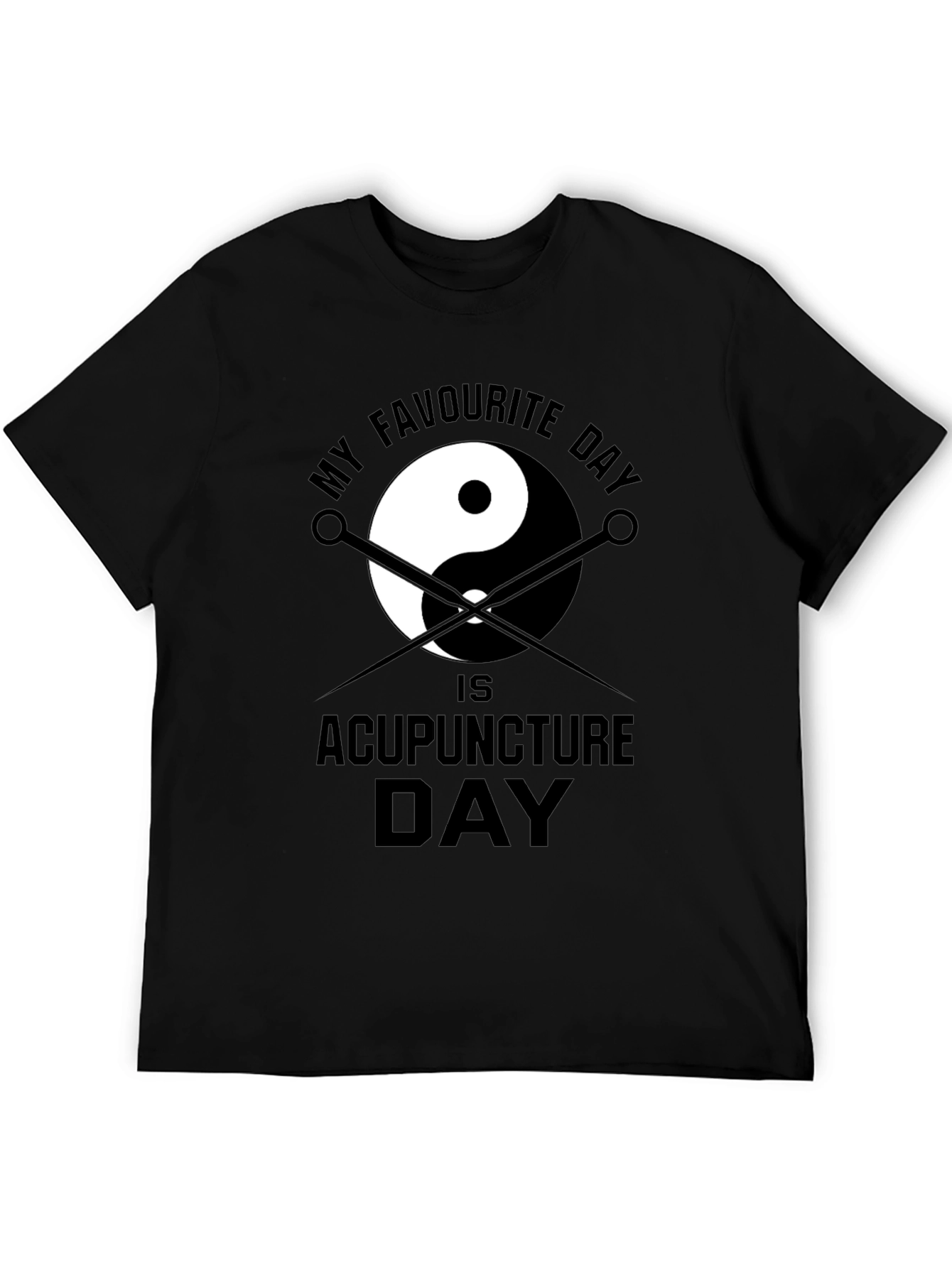 Embrace balance and wellness with this unique graphic t-shirt. Featuring a classic yin yang symbol creatively integrated with acupuncture needles, this shirt makes a statement. The bold black design is printed on what appears to be a soft, comfortable cotton material, perfect for everyday wear. Show your appreciation for traditional medicine and holistic health with this eye-catching tee. Ideal for acupuncture enthusiasts, massage therapists, or anyone seeking inner peace. This shirt will become a conversation starter.