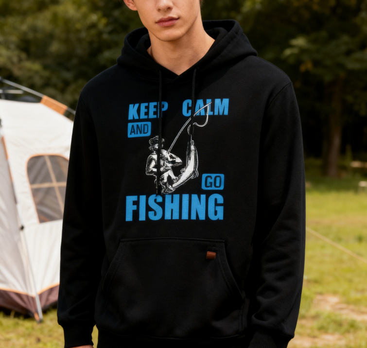 a'Keep Calm and Go Fishing' Graphic Hoodie for Outdoor Enthusiasts