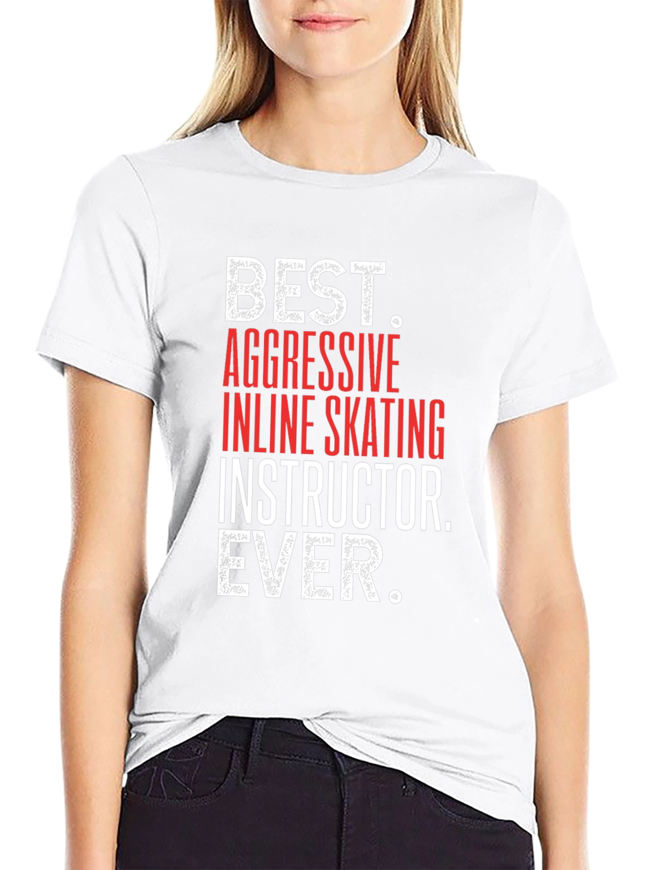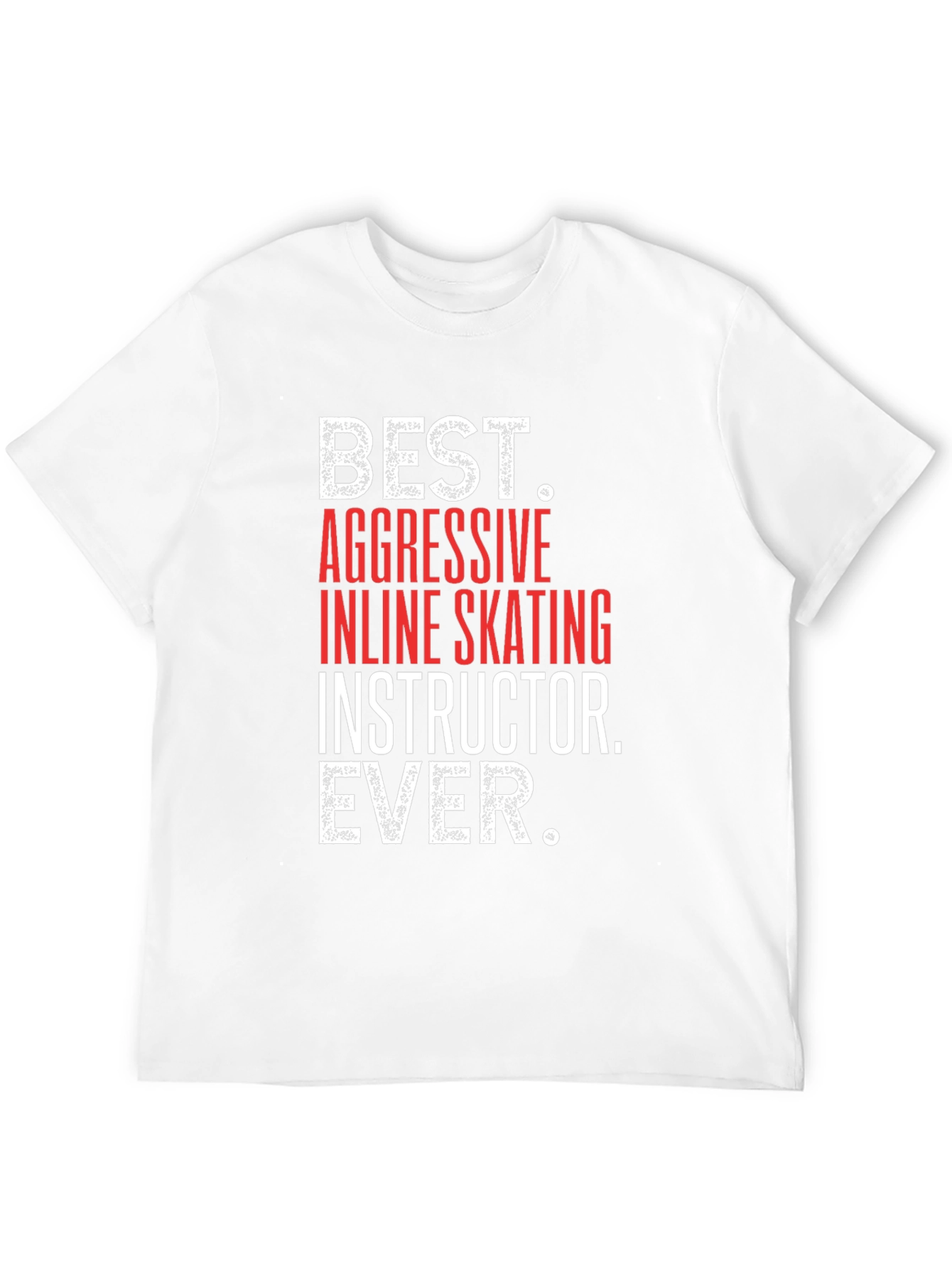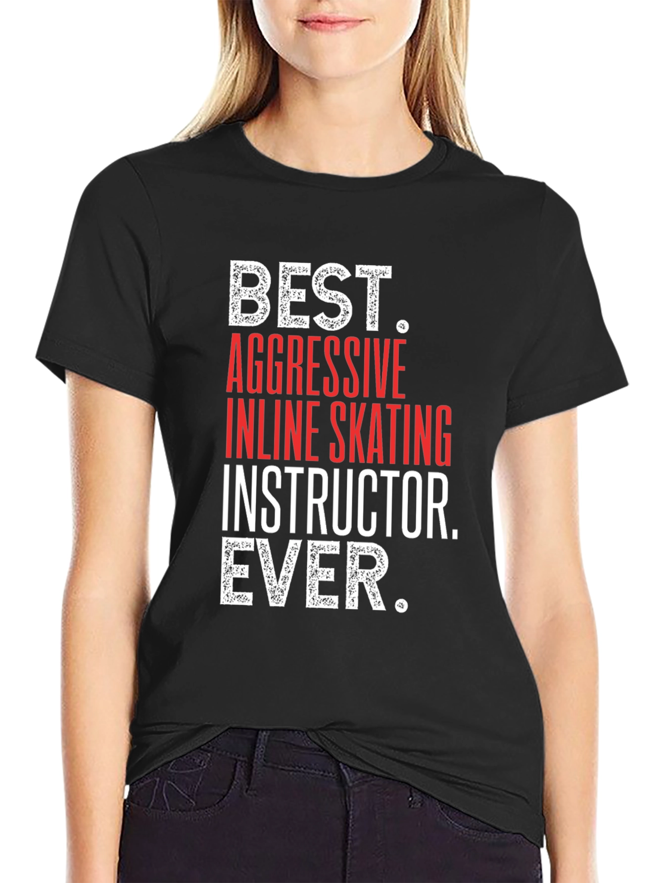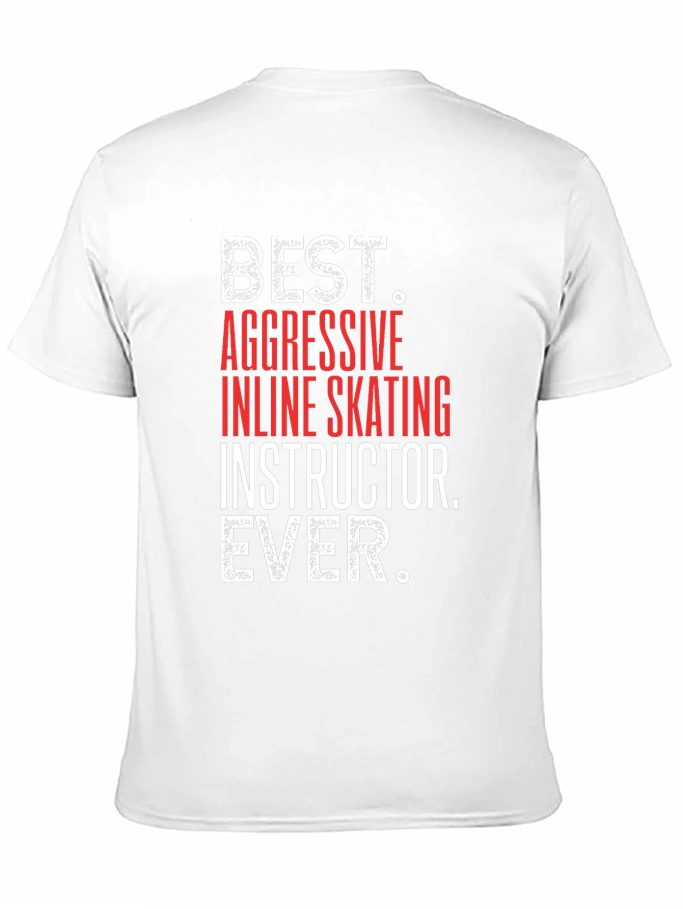 Show your passion for aggressive inline skating with this bold black t-shirt. Featuring the text "BEST. AGGRESSIVE INLINE SKATING INSTRUCTOR. EVER." in a striking combination of red and white font, this shirt is sure to turn heads. The design is eye-catching, making it perfect for skating sessions, casual outings, or as a gift for your favorite inline skating instructor. Made from comfortable materials, it ensures a great fit and long-lasting wear. Stand out and let everyone know who the best inline skating instructor is!