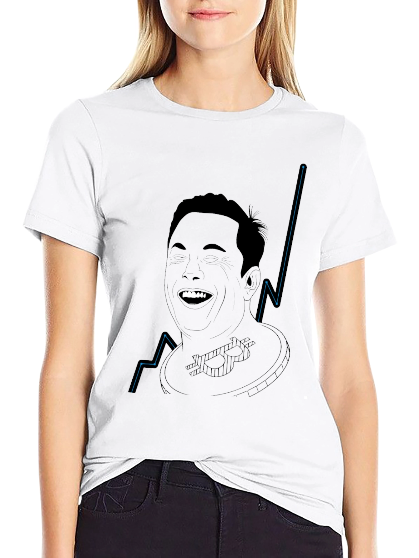 Show your support for the crypto revolution with this unique black t-shirt. Featuring a stylized graphic of a smiling face overlaid with a rising Bitcoin chart, this tee subtly celebrates the bull market. The minimalist design combines bold lines with a simple color palette, making it a standout piece for any crypto enthusiast. Made from a comfortable-looking fabric, it's perfect for casual wear, meetups, or trading sessions. The design features a Bitcoin logo, which is sure to spark conversations and connect you with fellow investors. Get yours today and wear your investment pride!