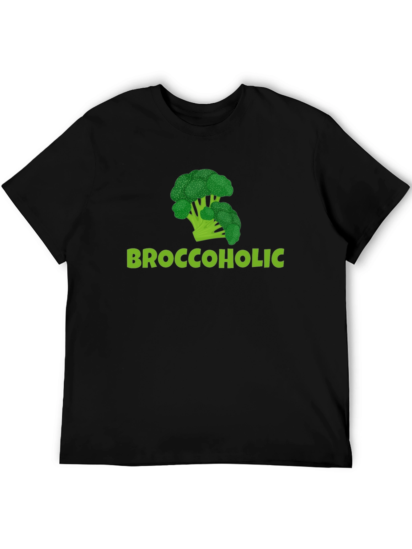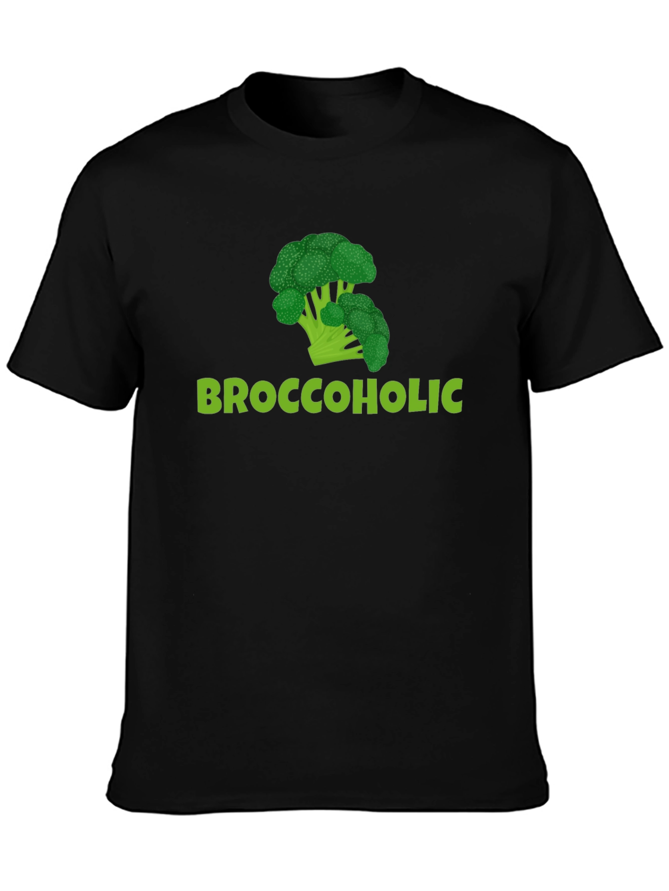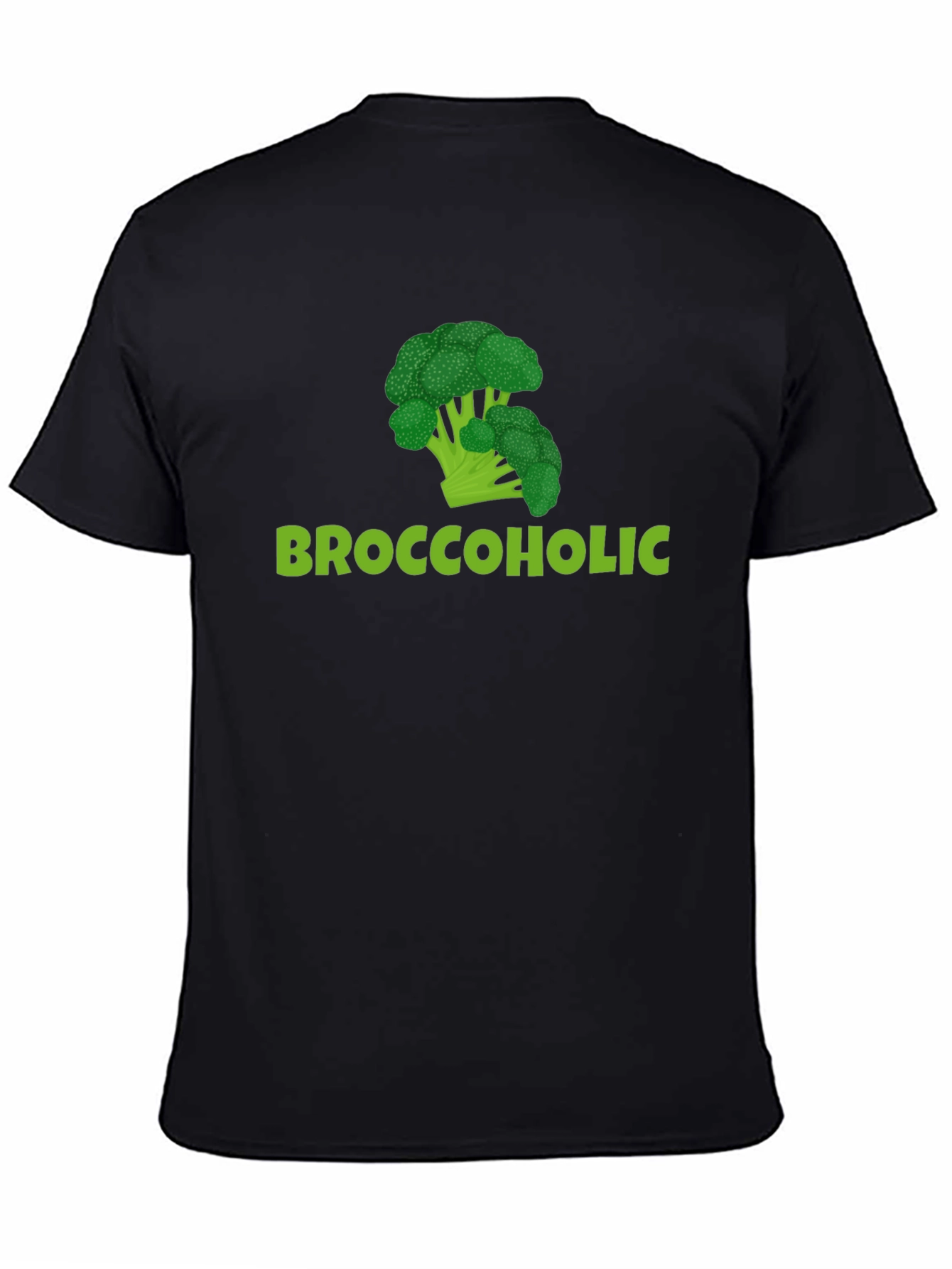 Show off your love for broccoli with this humorous black t-shirt! Featuring a vibrant green broccoli graphic above the playful text 'Broccoholic,' this tee is sure to turn heads. Made from a comfortable, breathable fabric, it's perfect for everyday wear. Whether you're hitting the gym, running errands, or simply lounging at home, this unique t-shirt lets you express your personality with a touch of wit. A fantastic conversation starter, this shirt also makes a fun gift for the health-conscious and vegetable enthusiasts in your life. Embrace your inner 'Broccoholic' with this eye-catching tee!
