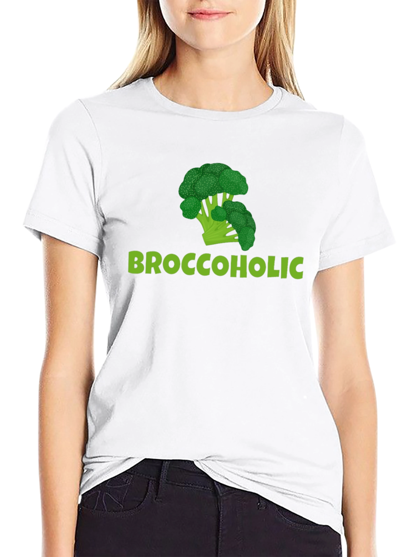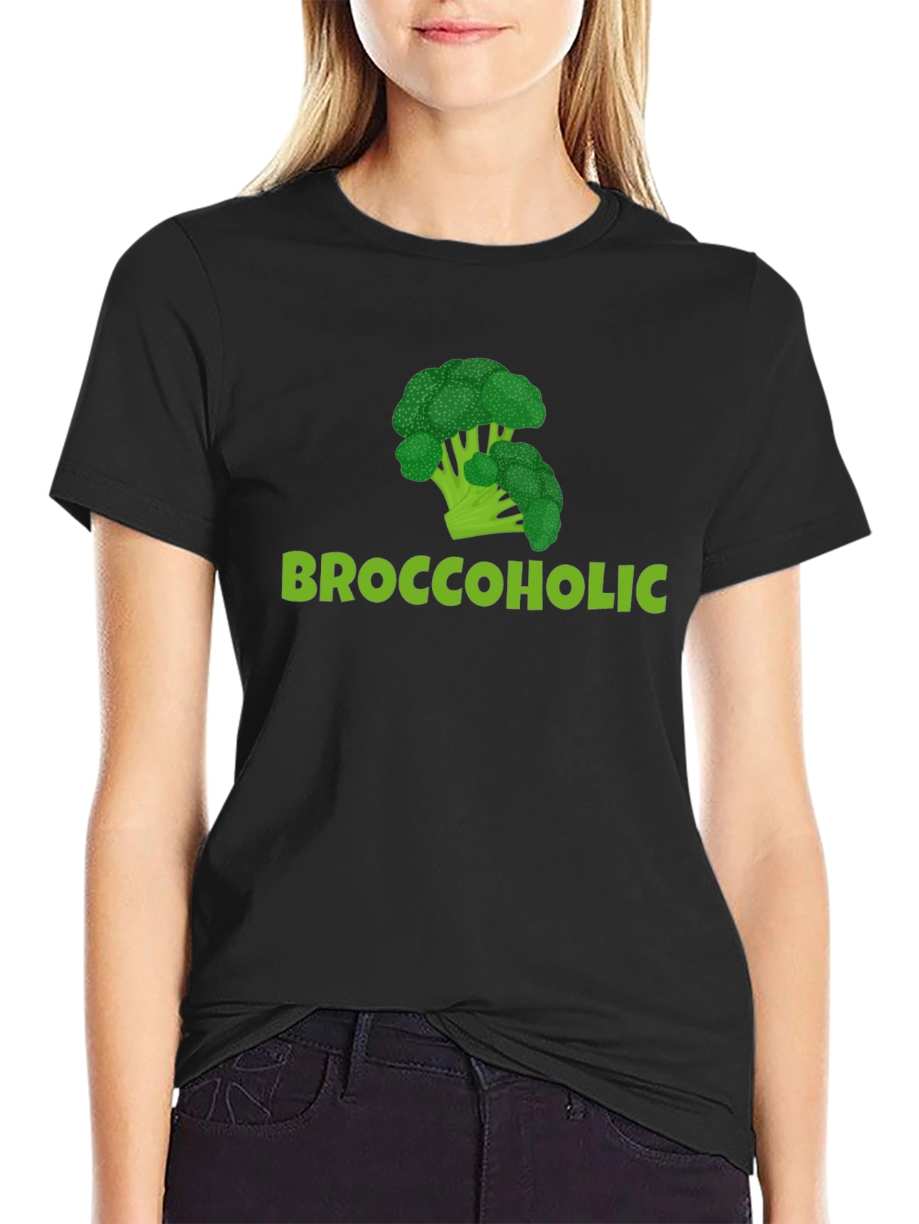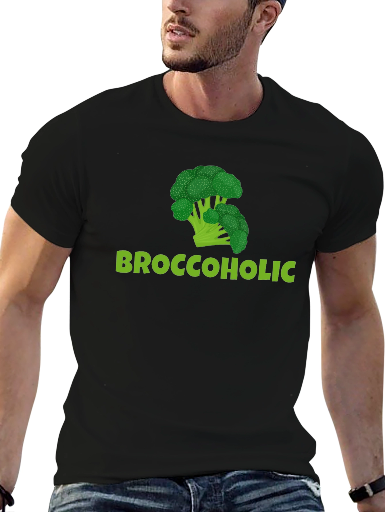 Show off your love for broccoli with this humorous black t-shirt! Featuring a vibrant green broccoli graphic above the playful text 'Broccoholic,' this tee is sure to turn heads. Made from a comfortable, breathable fabric, it's perfect for everyday wear. Whether you're hitting the gym, running errands, or simply lounging at home, this unique t-shirt lets you express your personality with a touch of wit. A fantastic conversation starter, this shirt also makes a fun gift for the health-conscious and vegetable enthusiasts in your life. Embrace your inner 'Broccoholic' with this eye-catching tee!