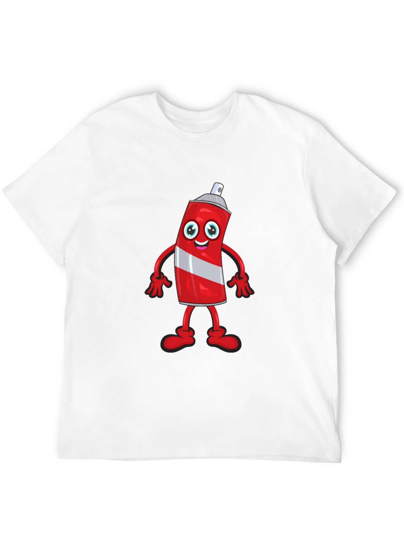 Show off your artistic side with this fun black t-shirt! The shirt features a vibrant cartoon graphic of a red spray paint can character with a silver stripe. This playful design is perfect for artists, graffiti enthusiasts, or anyone who loves quirky and eye-catching apparel. Made from a soft, comfortable fabric, this tee is ideal for everyday wear, creative projects, or casual outings. Add a pop of color and personality to your wardrobe with this unique statement piece.