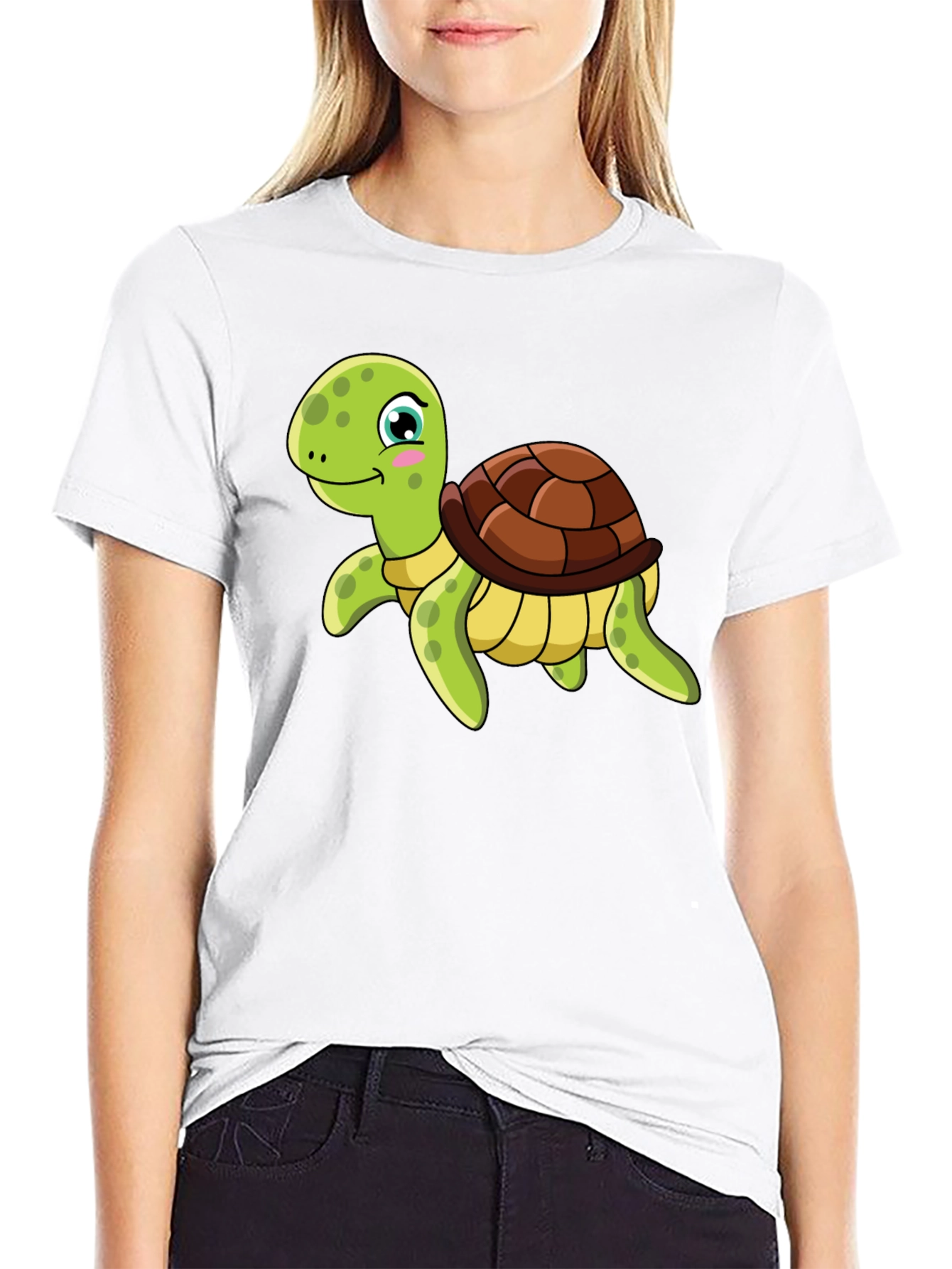 This black t-shirt features a vibrant and adorable cartoon turtle graphic. The turtle has a green body, a brown shell, and a charming expression with big eyes. The shirt appears to be made of a soft, comfortable material, perfect for everyday wear. The design is playful and eye-catching, making it a great choice for casual outings, a fun gift or relaxing at home. Show off your love for turtles and whimsical style with this unique graphic tee. It's sure to bring a smile to anyone's face!