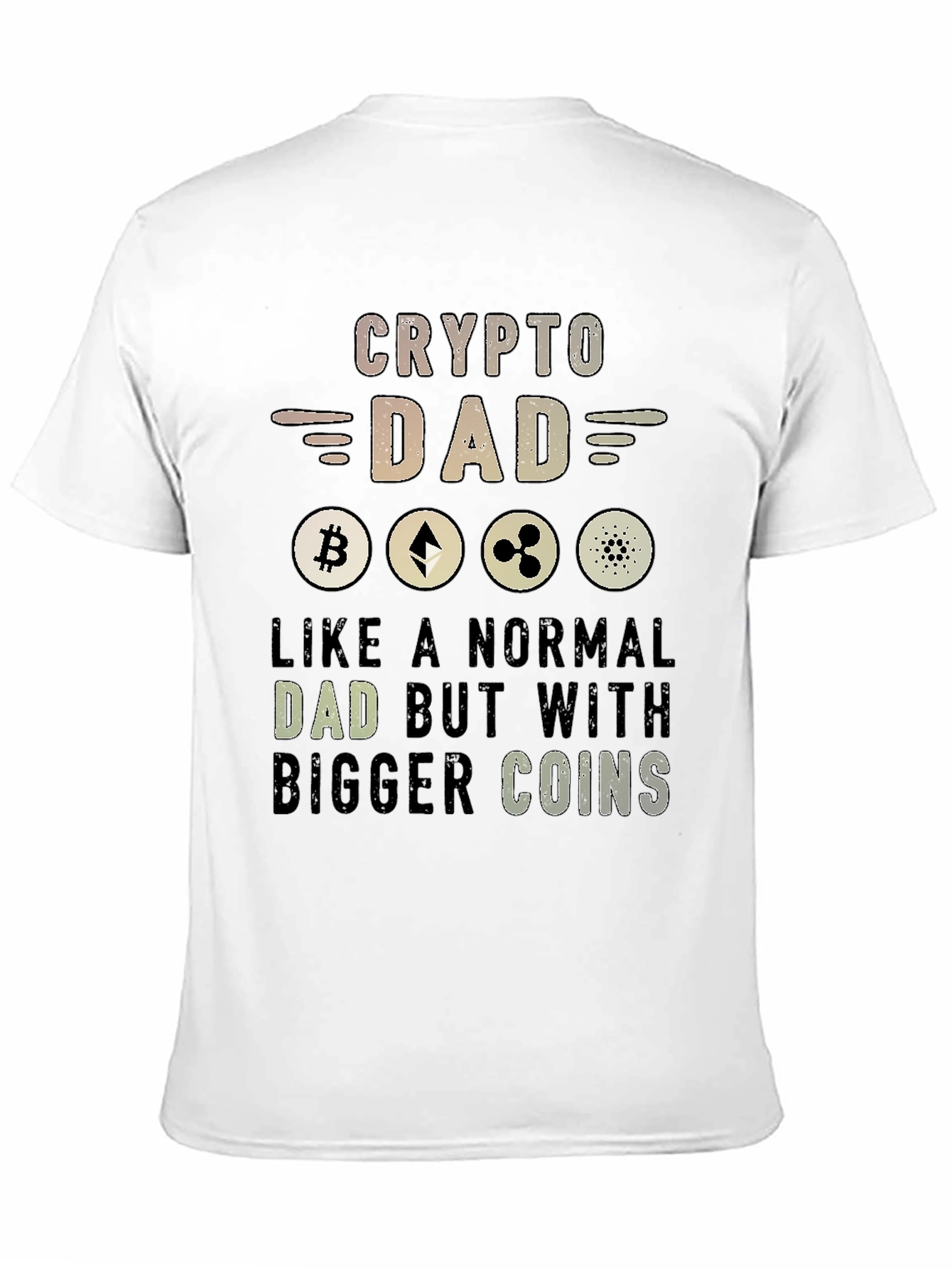 Show off your love for crypto with this cool "Crypto Dad" t-shirt. The shirt features crypto icons like Bitcoin, Ethereum, Ripple, and Cardano, for a cool cryptocurrency design. Made from comfortable fabric, this tee is perfect for casual wear or crypto meetups. A fun and unique gift idea for any crypto enthusiast dad who's into digital currencies and blockchain technology. Great for everyday wear to express your passion for cryptocurrency.