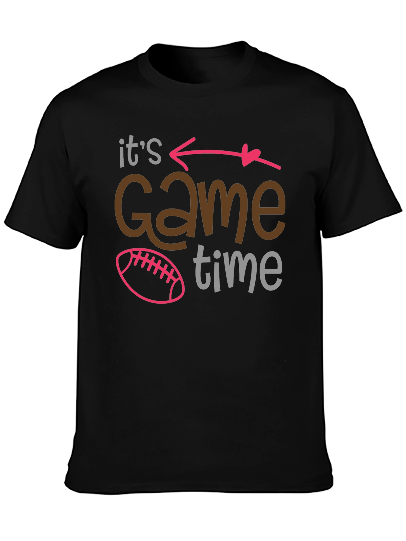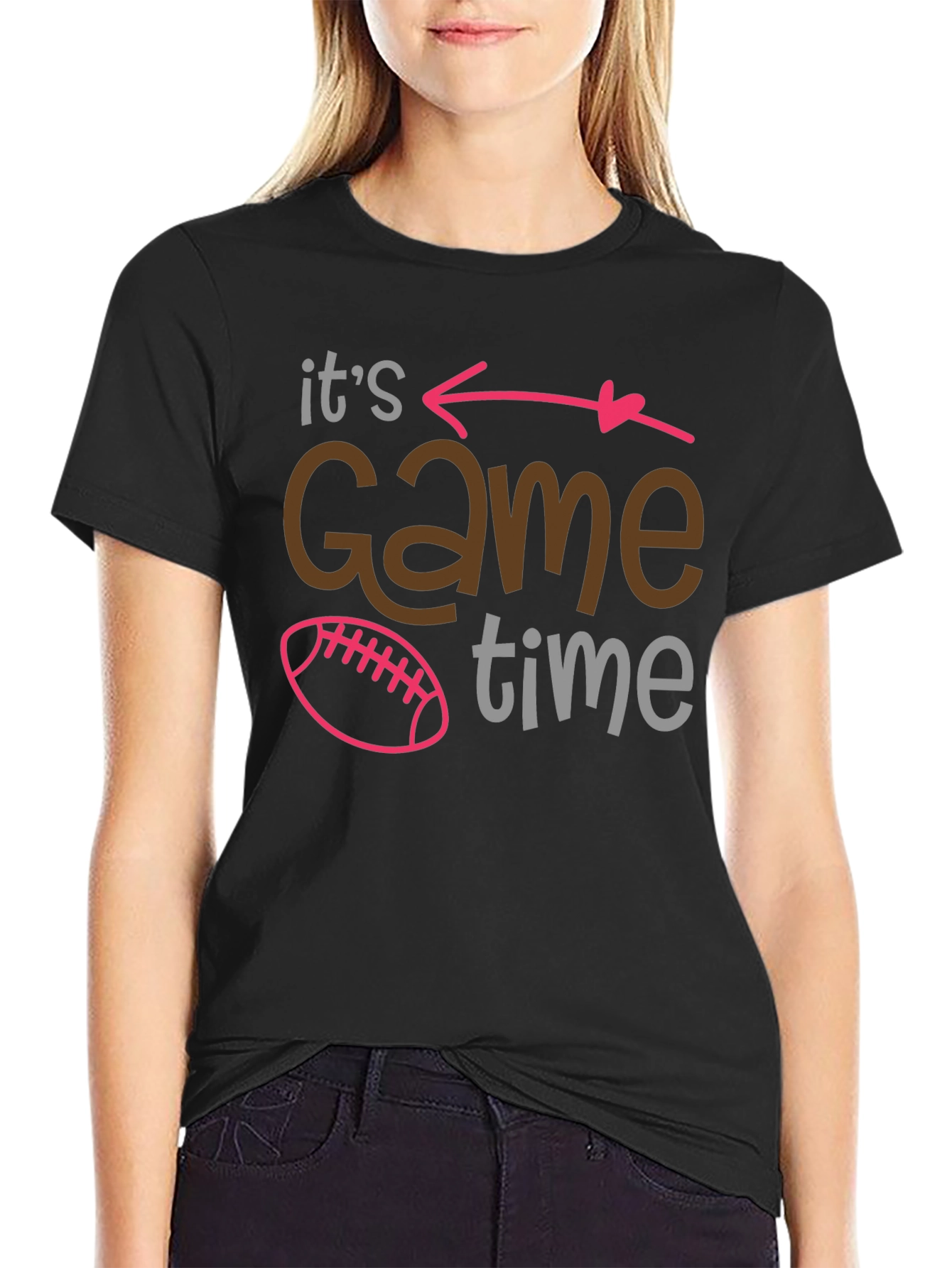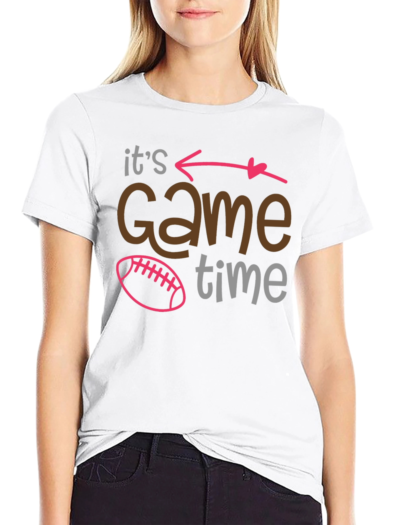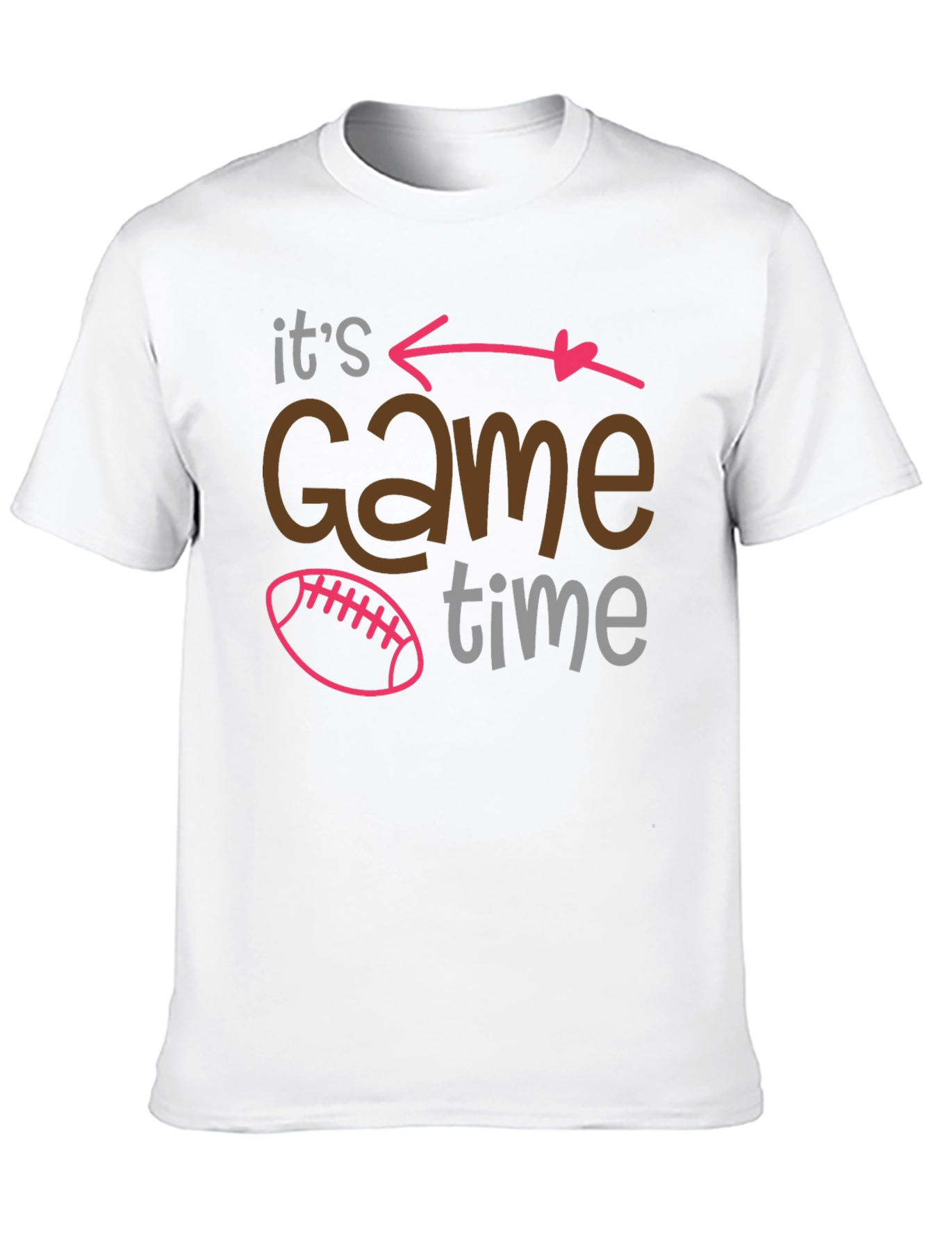 Show your love for the game with this stylish "It's Game Time" graphic tee! The design features a playful combination of colors, including brown, pink, and grey, with a cute football graphic. Made from a comfortable, breathable fabric, this t-shirt is perfect for game day, casual outings, or lounging at home. Its eye-catching design is sure to turn heads and spark conversations. Whether you're a player or a fan, this t-shirt is a must-have addition to your wardrobe. Represent your passion for football in style and comfort!