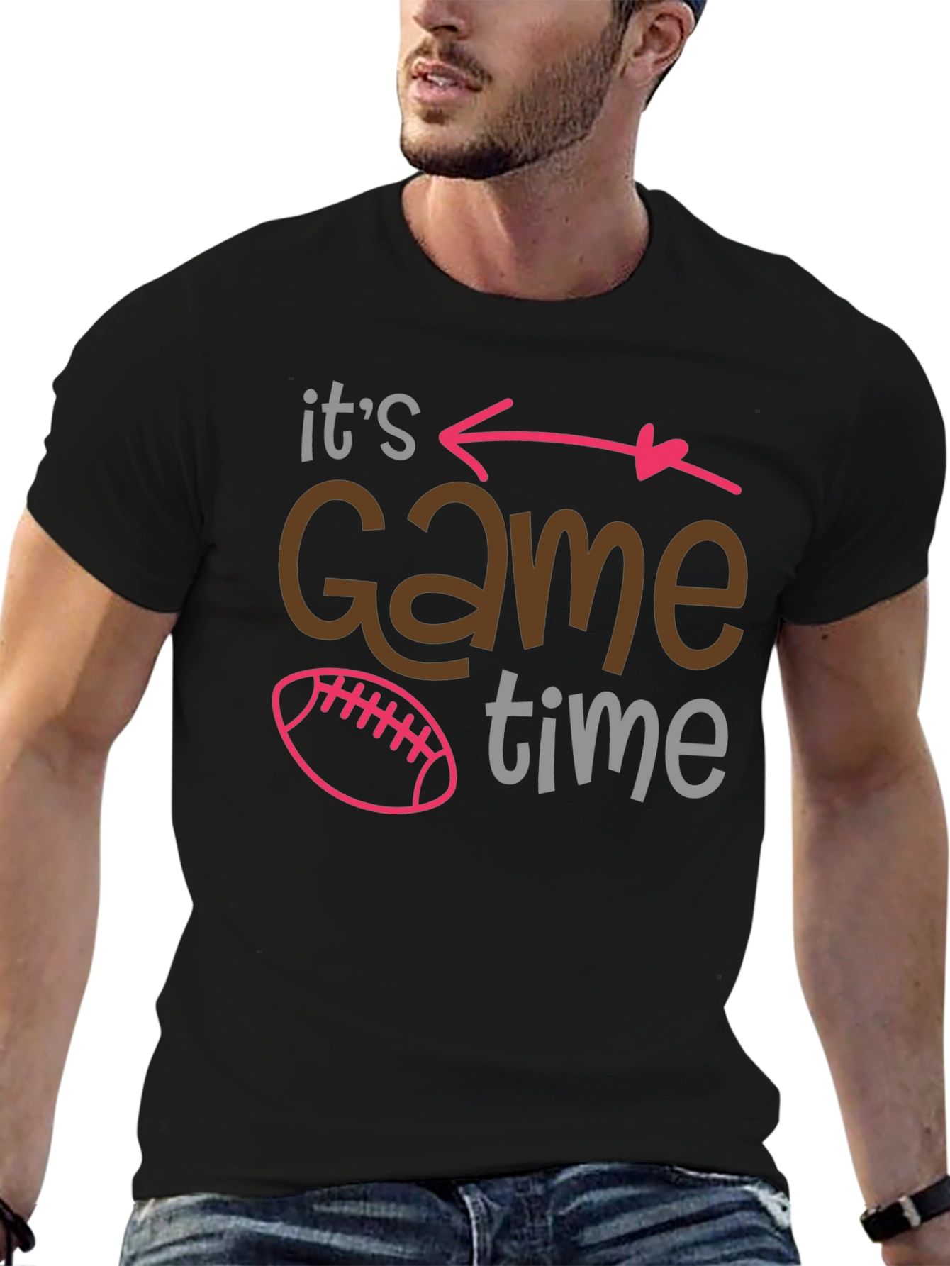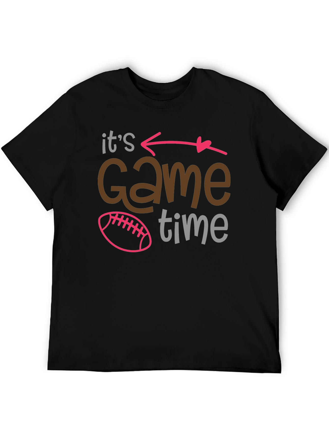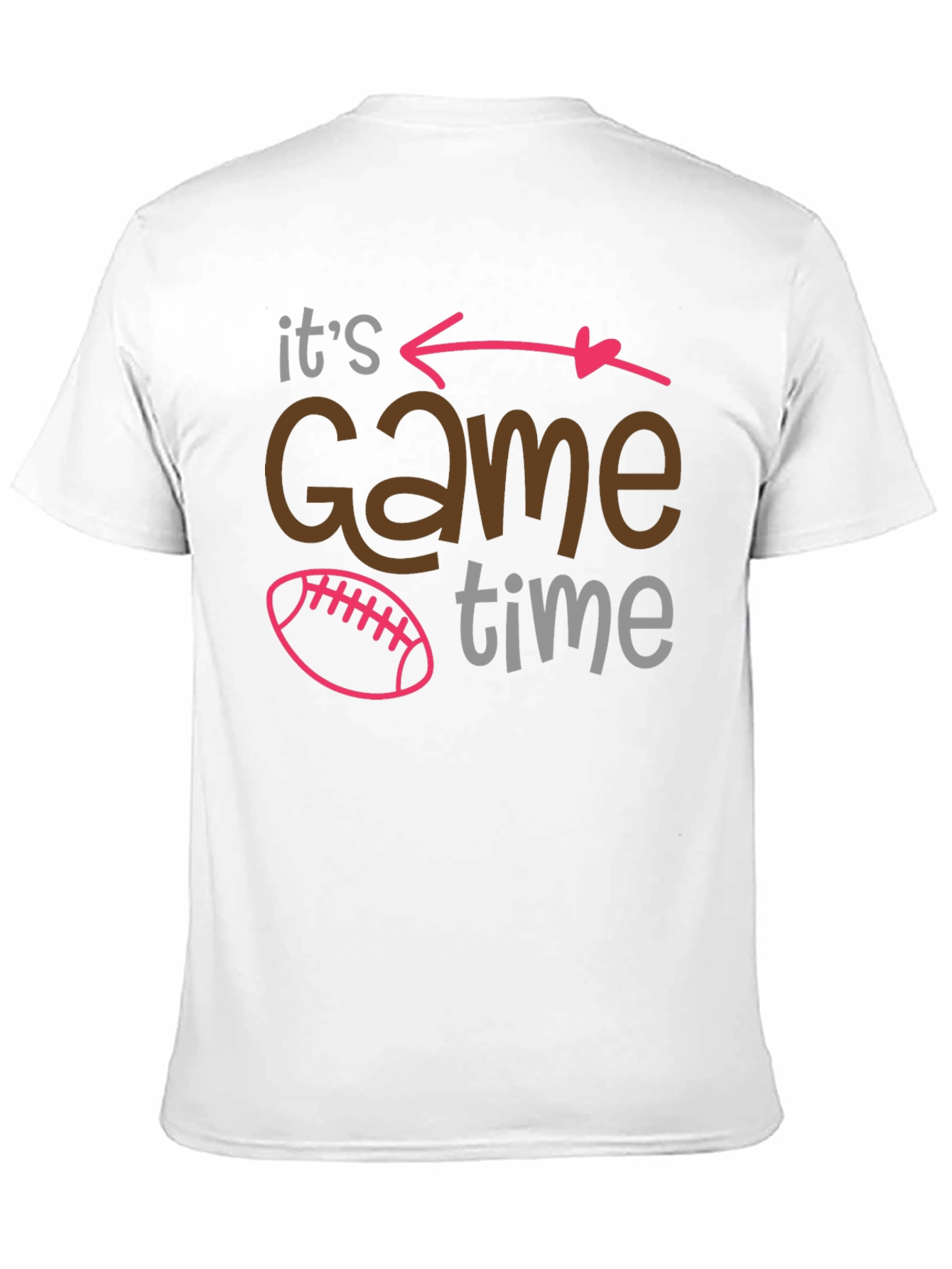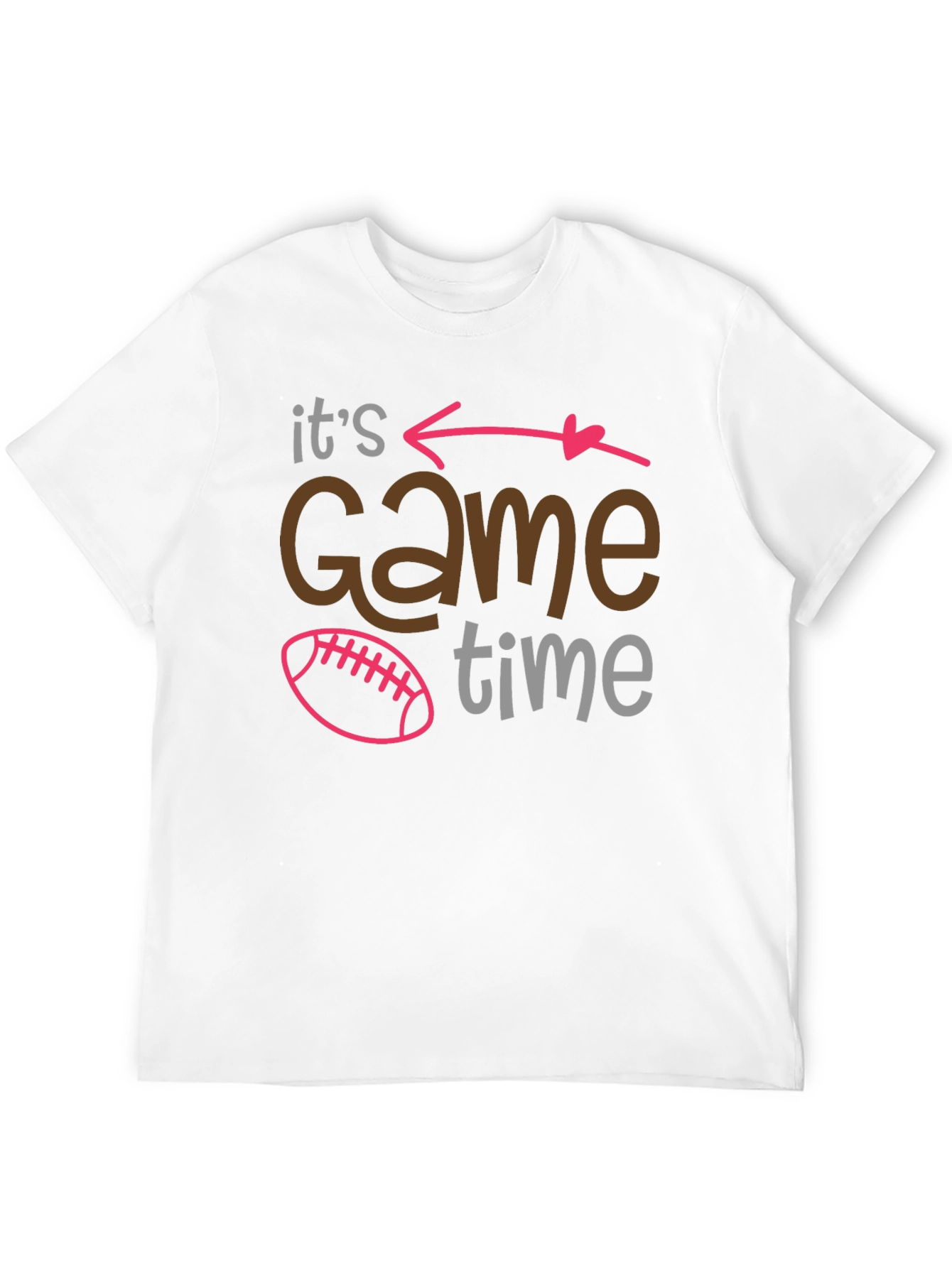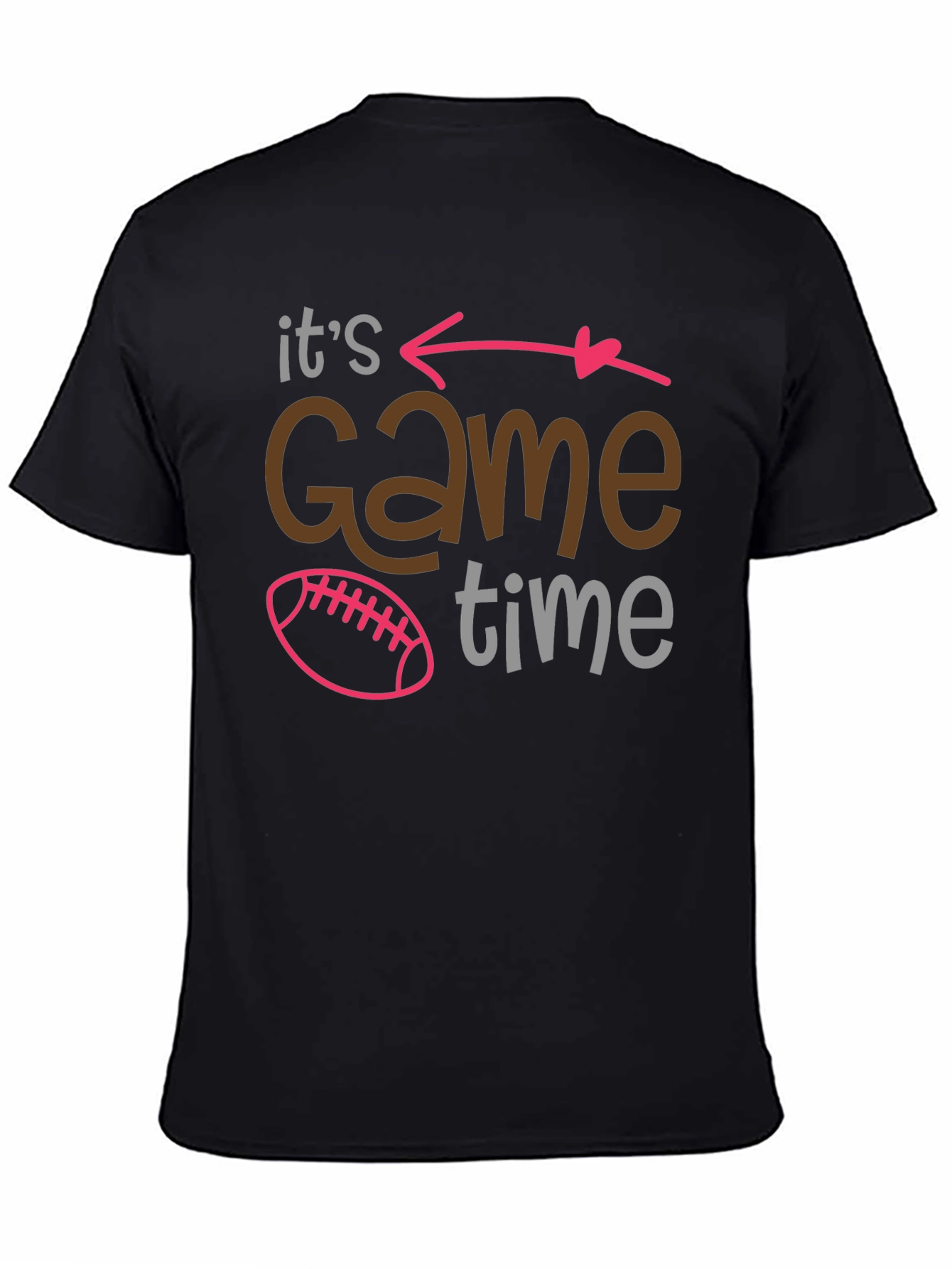 Show your love for the game with this stylish "It's Game Time" graphic tee! The design features a playful combination of colors, including brown, pink, and grey, with a cute football graphic. Made from a comfortable, breathable fabric, this t-shirt is perfect for game day, casual outings, or lounging at home. Its eye-catching design is sure to turn heads and spark conversations. Whether you're a player or a fan, this t-shirt is a must-have addition to your wardrobe. Represent your passion for football in style and comfort!