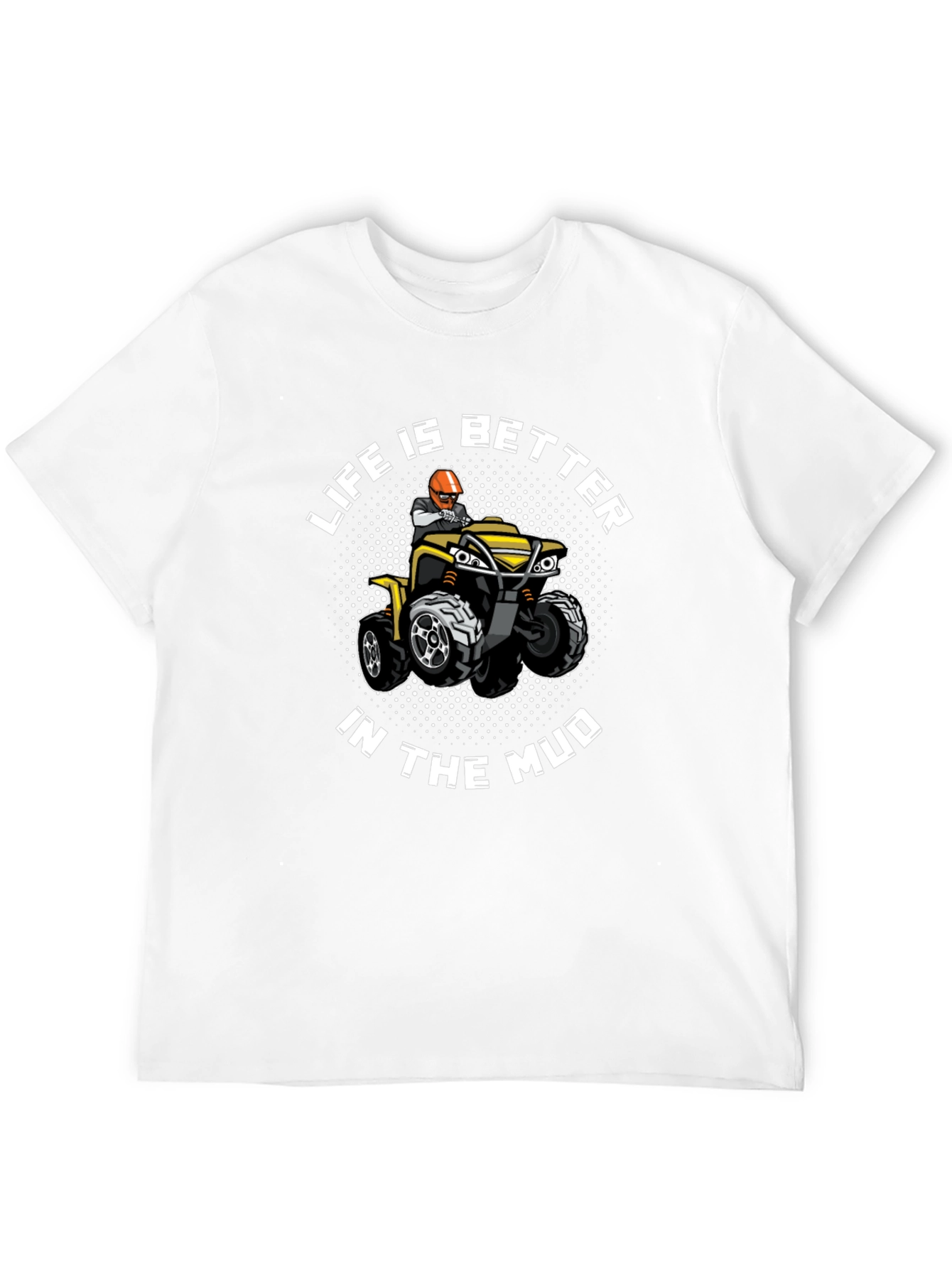 Show off your adventurous side with this black graphic t-shirt. It features a vibrant print of an ATV rider and the playful saying "Life Is Better In The Mud", perfect for off-road enthusiasts. This tee is made from a comfortable, breathable fabric and will keep you cool and stylish. Whether you're hitting the trails or hanging out with friends, this shirt is sure to turn heads. Get yours today and let everyone know you'd rather be in the mud!