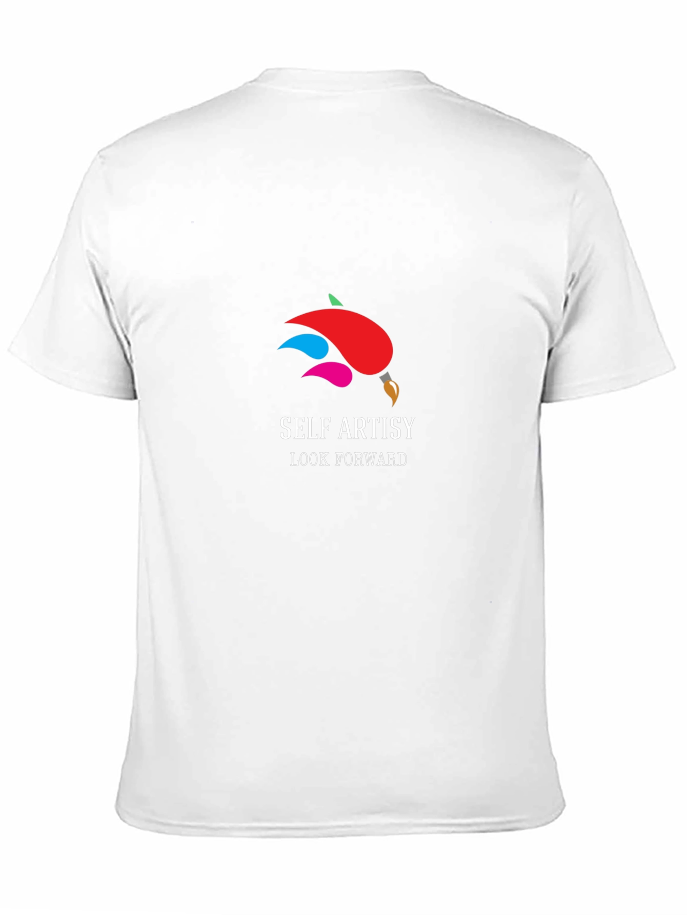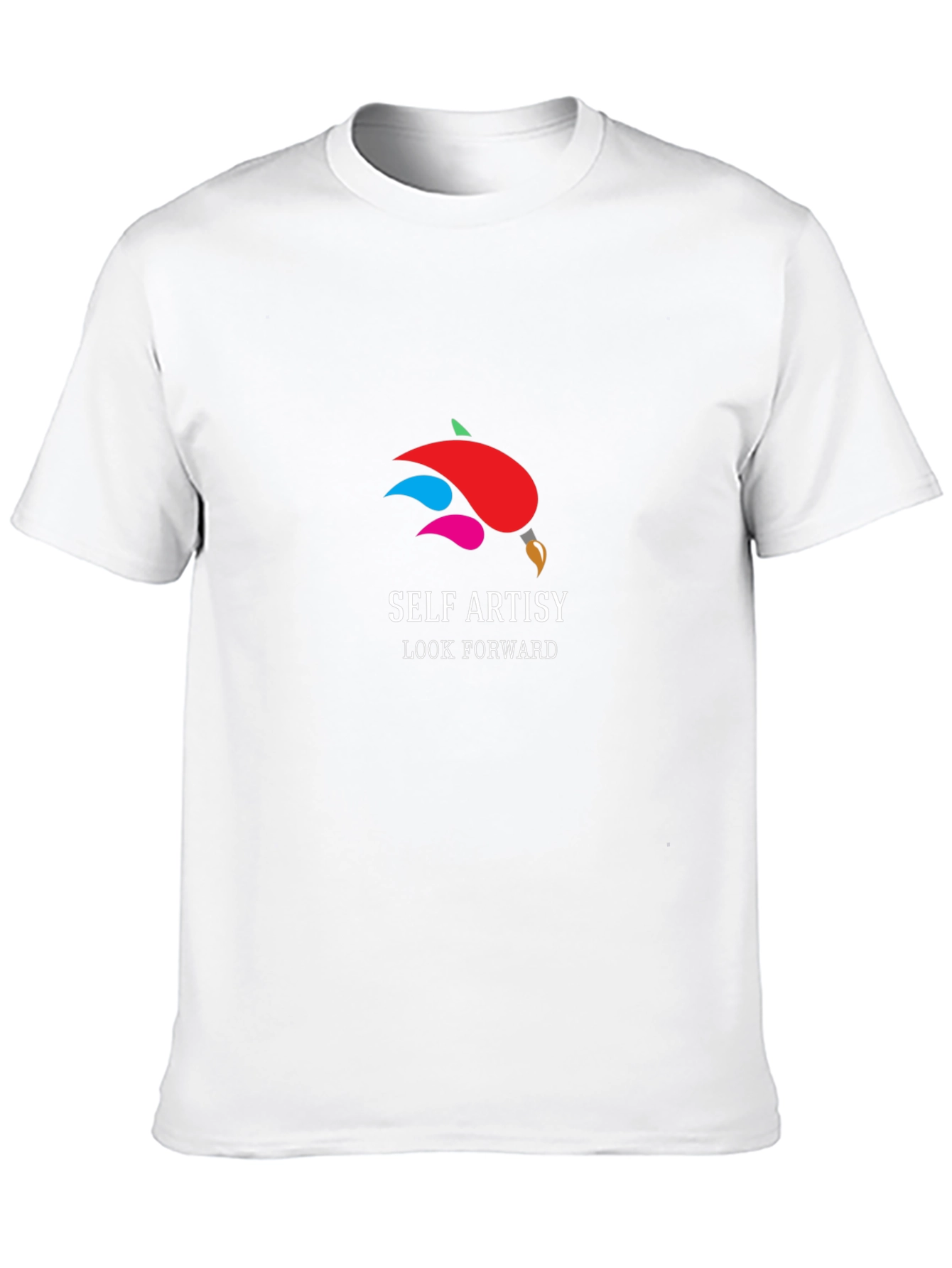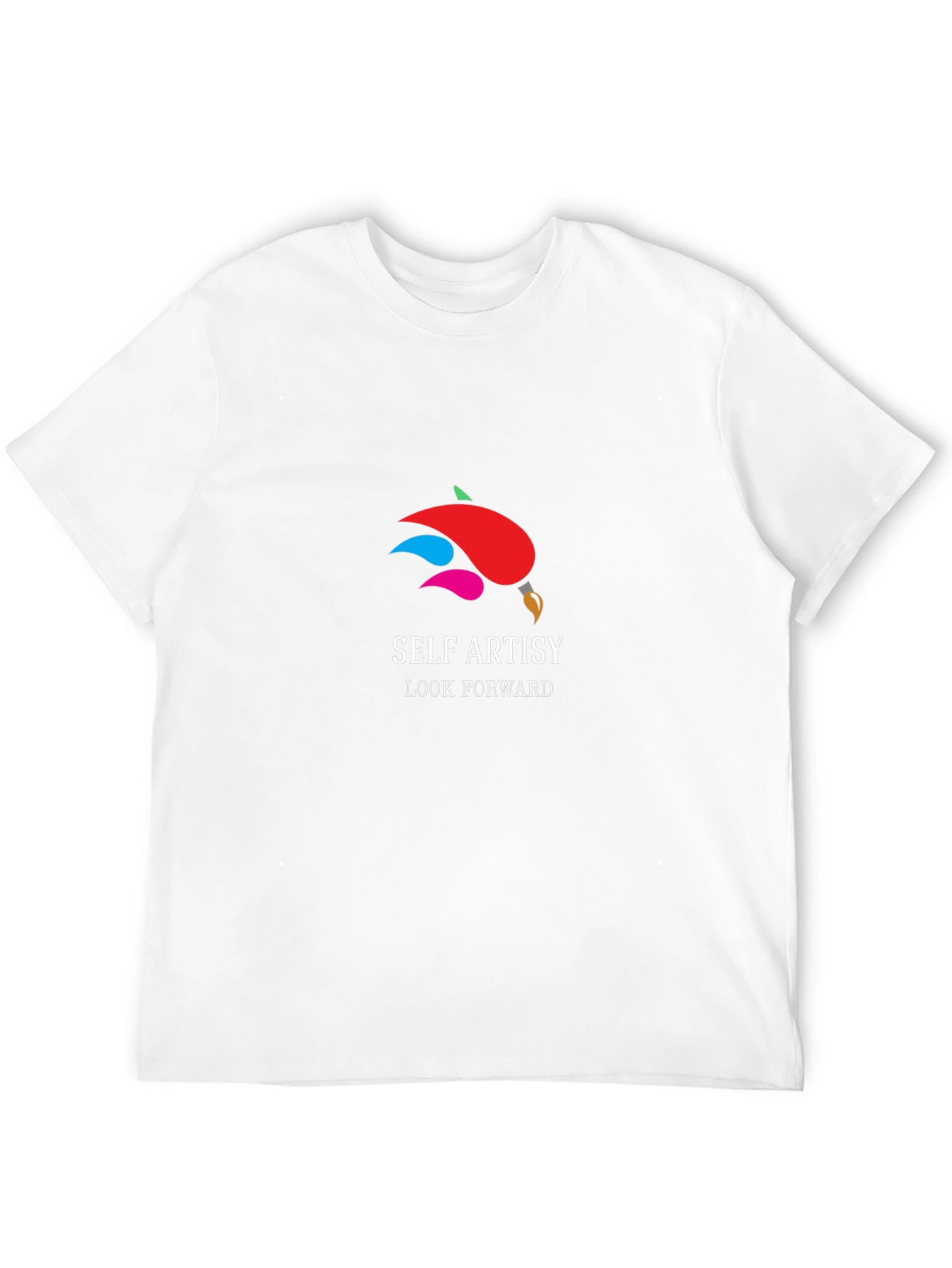 Showcase your artistic side with this stylish black T-shirt featuring a unique paint brush design with vibrant colors! The design includes the text "SELF ARTSY" and "LOOK FORWARD". Made from a soft, comfortable fabric, this T-shirt is perfect for everyday wear and expressing your creativity. This tee will make you look and feel great, whether you're heading to an art class, casual get-together, or just relaxing at home. Get ready to paint your day with confidence!