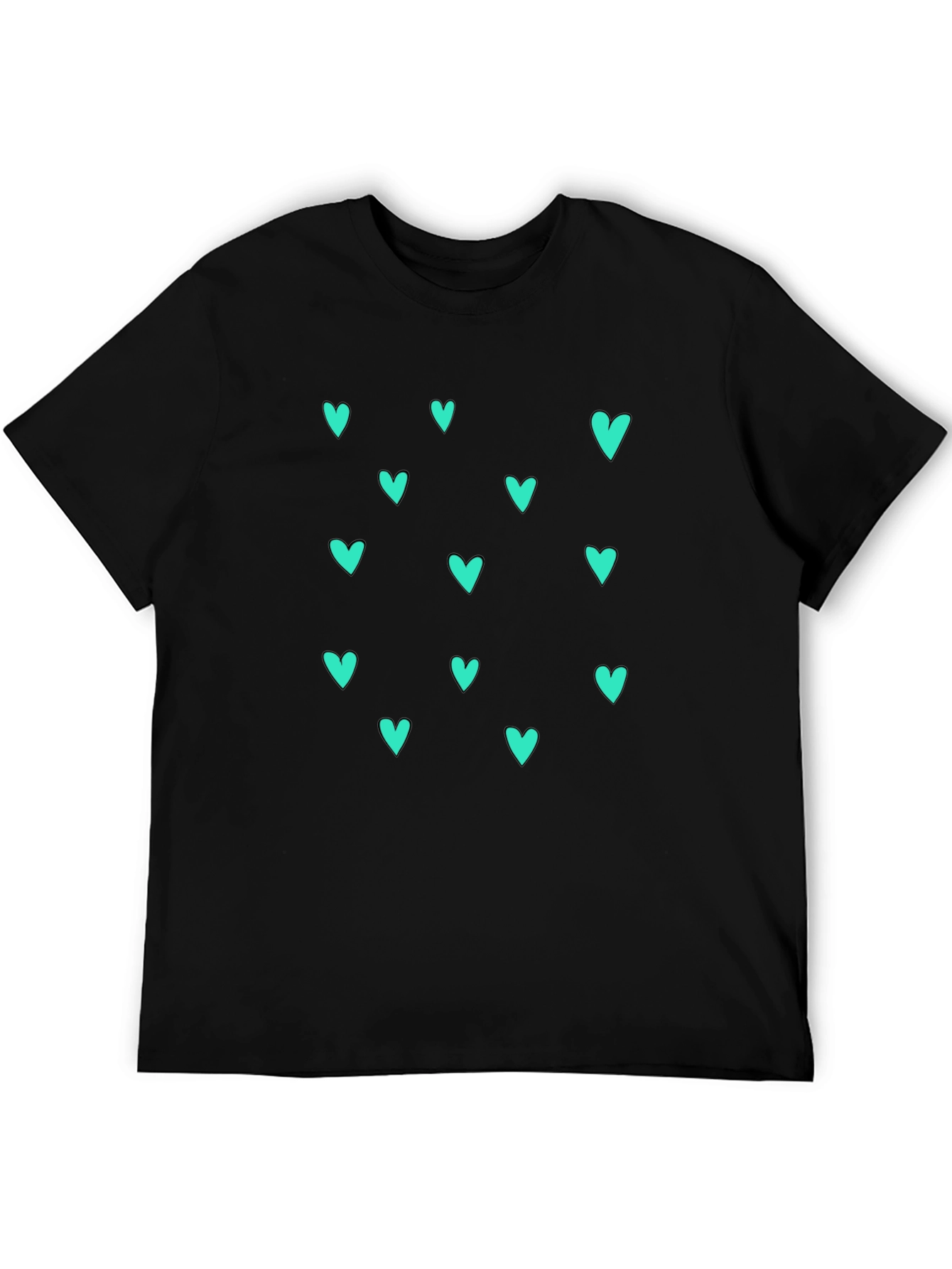 Trendy Black T-Shirt with Teal Heart Pattern