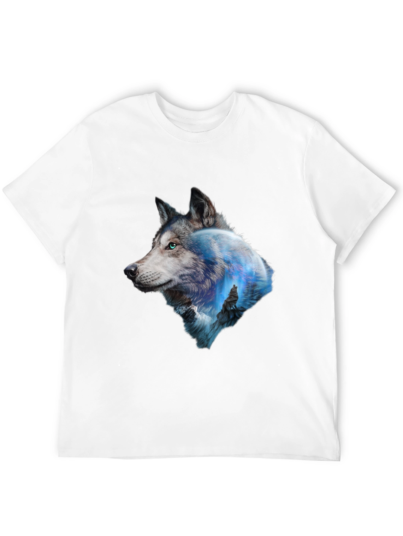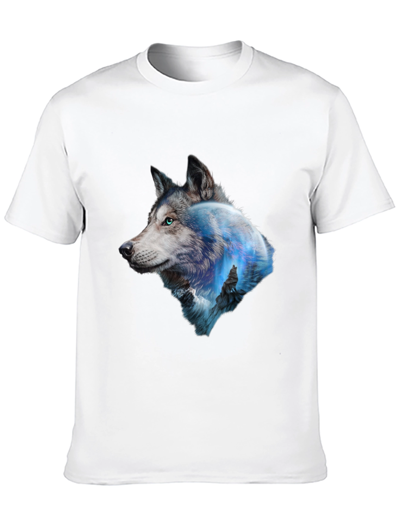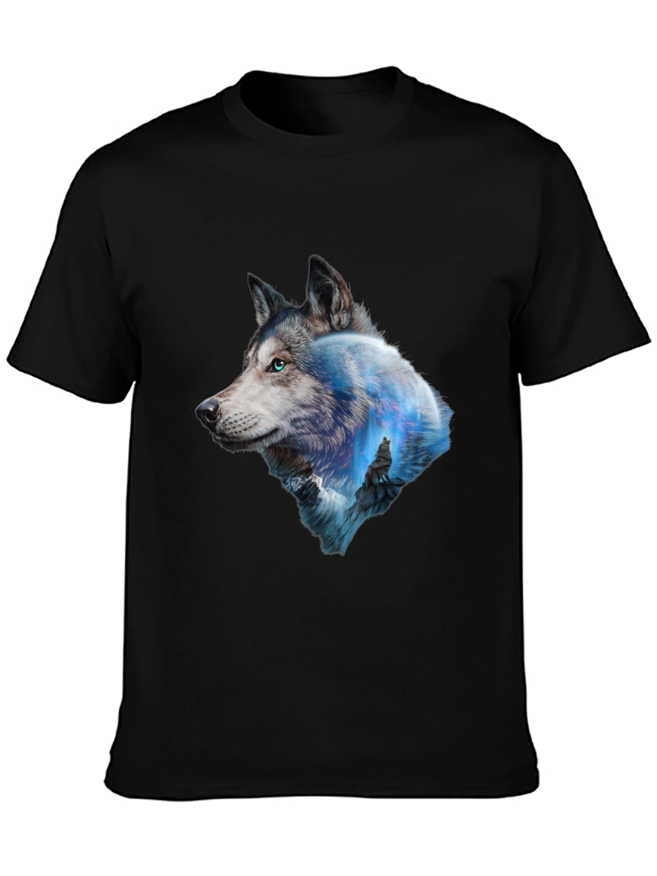 Embrace the call of the wild with this striking black t-shirt featuring a captivating wolf graphic. The design showcases a majestic wolf head against a backdrop of a serene midnight forest, creating a stunning visual contrast. Crafted from a soft, breathable cotton blend, this tee offers both comfort and style. The detailed print ensures a unique look that's perfect for casual wear. Ideal for nature lovers and anyone who appreciates bold, artistic designs. Elevate your wardrobe with this eye-catching statement piece!